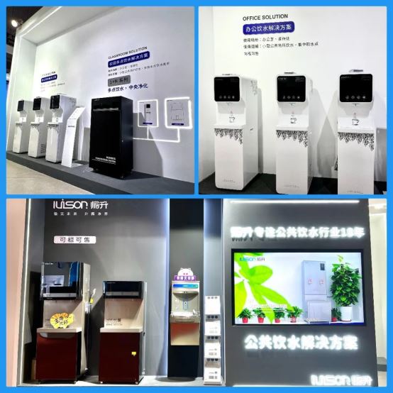 在本屆展會(huì)上,廣東愉升結(jié)合當(dāng)前市場(chǎng)需求,重點(diǎn)展示了愉升在校園飲水機(jī)、幼兒園飲水機(jī)、即熱式開水器、步進(jìn)式開水器、戶外飲水臺(tái)、BOT飲水機(jī)六大商用飲水領(lǐng)域的創(chuàng)新研發(fā)的成果和能力,吸引眾多客戶在展位前駐足、咨詢。