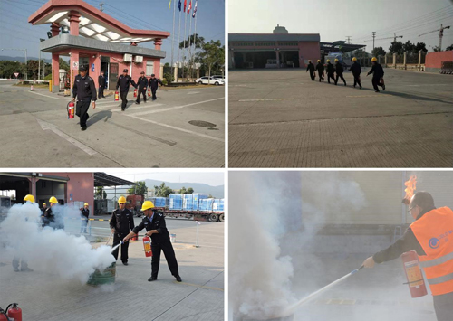 隨后滅火演練開始,義務消防員全體出動,整裝待發,拿起滅火器迅速趕往起火點。