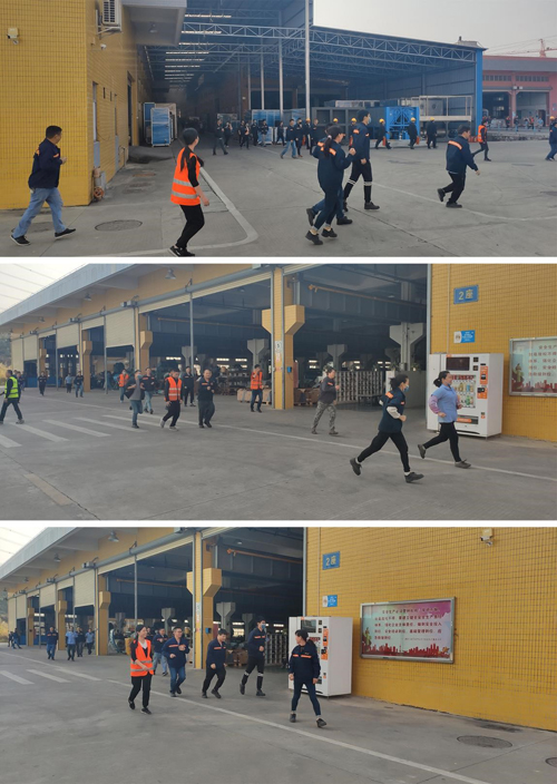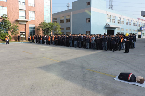 12月13日中午,當警鈴拉響的那一刻,消防演練正式開始!車間與辦公室各部門負責人、各車間小組長,馬上組織人員疏散,統一集合在遠離車間的籃球場,并清點撤離人數。