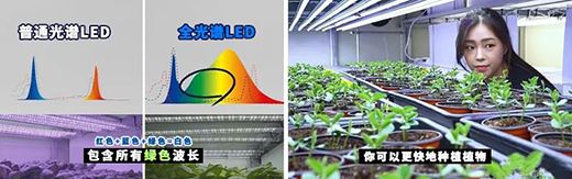 因此,三星的“全光譜LED”誕生了。除了紅色和藍(lán)色外,還包含了綠色,從而創(chuàng)造出一種結(jié)合了三原色(R+G+B)的白光。白光不僅能讓植物良好生長,還營造出一個(gè)有利于植物健康、均衡生長的環(huán)境,如創(chuàng)造養(yǎng)分、預(yù)防病蟲害等。實(shí)驗(yàn)證明,在全光譜LED下種植的生菜更豐滿、更健康。
