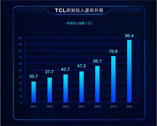 領(lǐng)跑全球并不容易,要超越,就要比日韓企業(yè)投入的更多,布局的更早。為此TCL早在2018年就開始了布局,接著加大了技術(shù)研發(fā)投入,2020年,TCL全球研發(fā)投入超96.4億元,同比增長36.5%。2021年上半年在研發(fā)方面投入的資金有50.9億元,同比提升76.9%,增速相當(dāng)驚人。海量研發(fā)轉(zhuǎn)化為巨大的技術(shù)儲備,截至2021上半年,TCL專利申請總量77167件,位居中國家電企業(yè)第一。