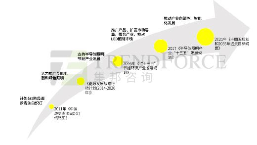 我國綠色照明“八五開始,九五起步”。1996年印發了《中國綠色照明工程實施方案》,這一計劃的主要目的是為了節約能源,健康照明。當時的白熾燈和高壓鈉燈仍占市場的主要地位。而當時的LED照明為新興產業,處于產業發展初期。當時的LED封裝技術主要由臺灣地區的企業把控,后來因LED有著環保、節能、高顯色性、長壽命等特點,逐步被市場所接受,吸引越來越多的商家加入這個行業。