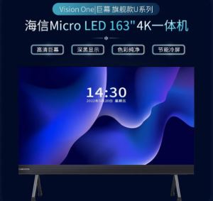 一體機(jī)方面,海信商顯推出了Micro LED一體機(jī)Vision One巨幕旗艦款U系列,號稱國內(nèi)唯一可以量產(chǎn)的采用真正Micro LED芯片的一體機(jī)。產(chǎn)品采用了小于75μm Micro LED發(fā)光芯片,芯片采用深黑密封技術(shù),高達(dá)98%的黑色表面占比,可呈現(xiàn)沉浸式的純黑顯示效果,實(shí)現(xiàn)百萬比一的對比度。另外,一體機(jī)具有"節(jié)能冷屏"的優(yōu)勢,整體系統(tǒng)功耗較同類產(chǎn)品降低超過30%,且屏幕長時間工作,屏體表面溫度可保持小于15℃。
