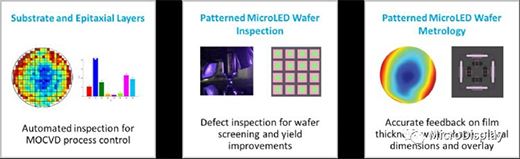KLA公司因應(yīng)這樣的需求,針對(duì)MicroLED提出全方位LED生產(chǎn)與制程監(jiān)控的解決方案,其中涉及多個(gè)制程階段,包括磊晶制程、micro LED圖形化、驅(qū)動(dòng)IC生產(chǎn)、顯示背板及巨量轉(zhuǎn)移,并以數(shù)據(jù)分析串聯(lián)檢測(cè)資料流,貢獻(xiàn)整個(gè)micro LED制造的良率提升— 從磊晶到最終micro LED顯示器,我們經(jīng)過(guò)市場(chǎng)驗(yàn)證的制程與制程監(jiān)控設(shè)備,旨在滿(mǎn)足獨(dú)特又嚴(yán)苛的micro LED生產(chǎn)流程所面臨的各種新挑戰(zhàn),并能加速提升廣泛應(yīng)用市場(chǎng)所需的產(chǎn)能,協(xié)助客戶(hù)達(dá)成高良率目標(biāo)。