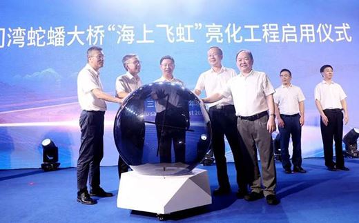 與會領導共同按下啟動球“海上飛虹”亮化工程正式啟用