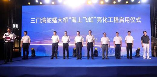 三門縣委副書記、縣長陳晨對三門灣蛇蟠大橋“海上飛虹”亮化工程的正式啟用表示熱烈祝賀,向為之付出辛勤努力的領導同志表示衷心感謝。