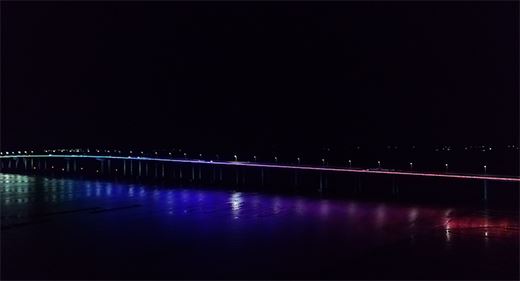 據悉,蛇蟠大橋“海上飛虹”亮化工程從今年6月初開始籌備,在亮化設計時,以突出蛇蟠大橋的橋梁結構為重點,在不改變原本風格、結構的同時,用藝術化展現蛇蟠大橋的夜間風貌,通過橋梁本身的魅力,突出蛇蟠大橋所具有的景觀功能,讓海島的文化氣息在閃耀的燈光中變得更加濃郁。