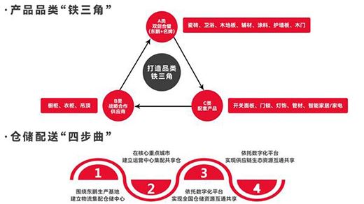 因此,東鵬的戰略方向由原來的流通思維向用戶思維轉變,整裝思維升級為“家服務”思維,實現裝修零售化,建立社區商業體,打通全鏈路,構建用戶居住新生態。