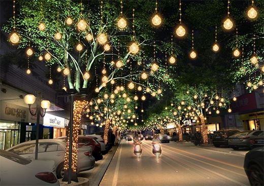 主干道兩邊的路燈和裝飾彩燈、燈籠造型可以挑選新穎別致一些的,科學(xué)合理的布局,注重文化色彩和附近景色的搭配,成為這個街道的一個特點,燈光旖旎、霓虹燈閃爍,讓人有一種童話般的感覺。吸引行人駐足逗留拍照。