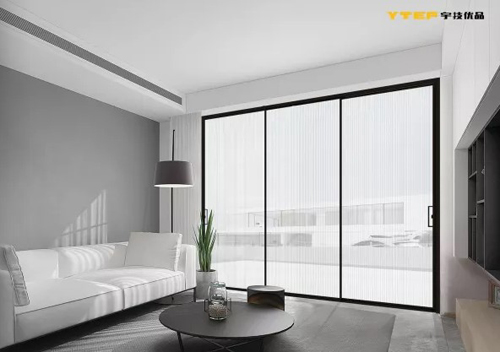 依靠成熟的門窗生產工藝,宇技優品打造了自豪的夾絲玻璃系列——宇凱16窄邊推拉門,夾絲圖案花樣多,如(表面)壓花或磨光、(顏色)透明或炫彩、(圖案)水墨花鳥或山水等。