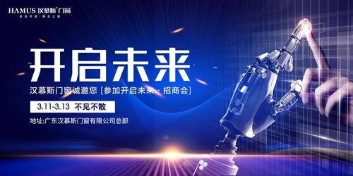 3月11-13日,漢慕斯門窗將在公司總部,舉辦“開啟未來”2021首場招商會(huì),總經(jīng)理阮明振將頒布全面優(yōu)惠的政策支持,與全國經(jīng)銷商攜手同心、共創(chuàng)未來!