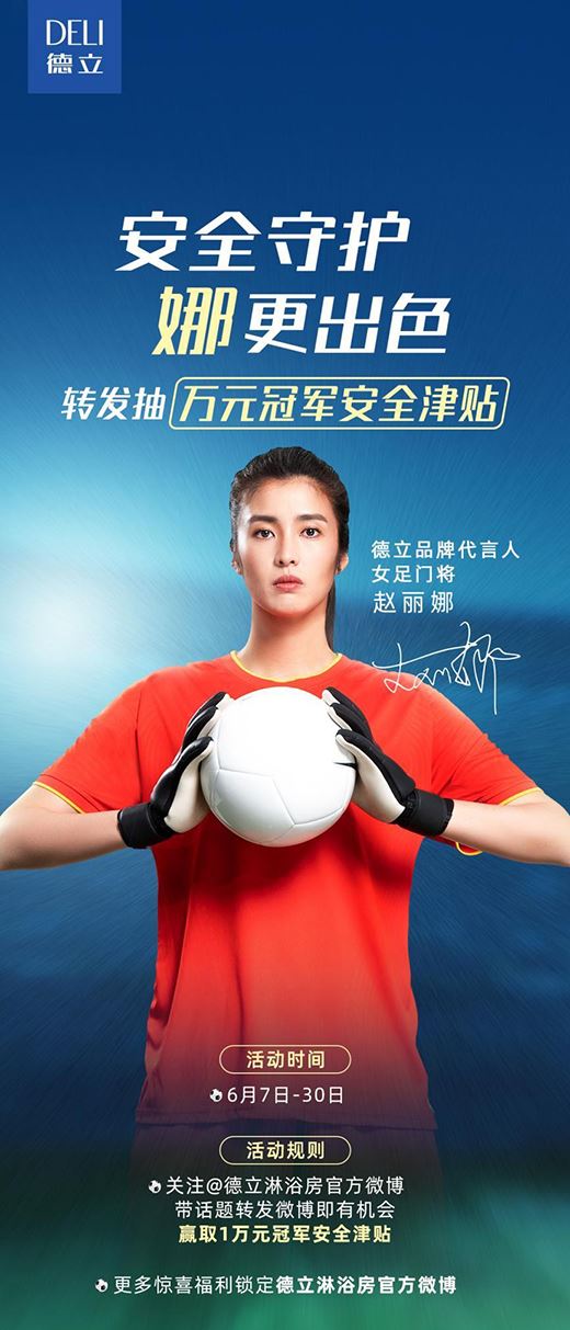 此外,德立「618六大鉅惠」全面啟動(dòng),6月7日-26日活動(dòng)期間,搜索“德立淋浴房旗艦店”,探索趙麗娜同款德立淋浴房,領(lǐng)取巨額優(yōu)惠,與德立品牌代言人、女足門將趙麗娜一起追求極致生活,解鎖更多淋浴房好品!