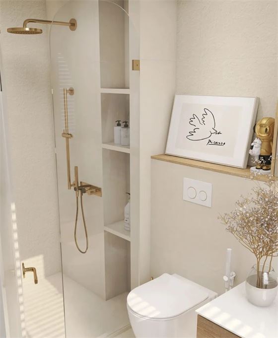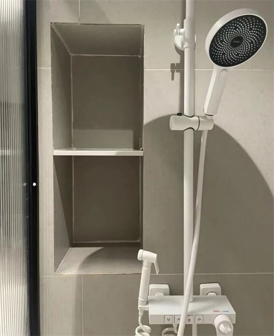 這和你想象的壁龕相差的不是一星半點(diǎn)吧!常規(guī)情況下,淋浴房裝壁龕都是延續(xù)墻角封落水管的位置用磚壘出來的,順勢(shì)做一個(gè)壁龕與淋浴房齊平,但這......