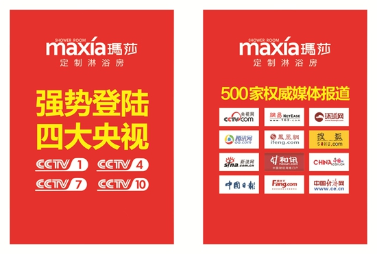 瑪莎淋浴房今年斥巨資登陸央視四大頻道并在百度、360、搜狐、新浪、騰訊、網易等互聯網平臺上推廣宣傳,通過在各大平臺的投放與宣傳,加大瑪莎淋浴房的影響力。