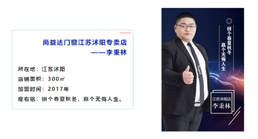 在經過慎重的考慮和周密的考察后,覺得尚益達門窗無論是品牌影響力還是對經銷商的扶持方面,都很符合他的要求,在品牌經營理念上也有很高的契合度,所以最終選擇加盟尚益達品牌。