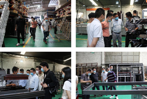 經銷商家人們依次參觀了歐宅廠區的研發設計部、加工部、質檢部、倉庫、展廳等,看見廠區內的防疫管理工作做得十分充足,也體會到生產人員的認真和專業。經過近距離的接觸和詳細討論,他們對歐宅門窗生產流程及其門窗產品的功能特性有了直觀深入的理解,對產品質量和歐宅品牌更充滿信心和期待。