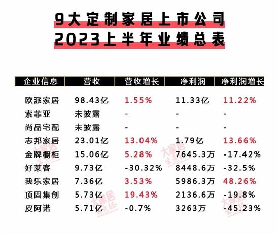 定制家居上市公司上半年的業(yè)績