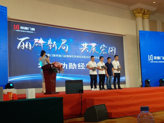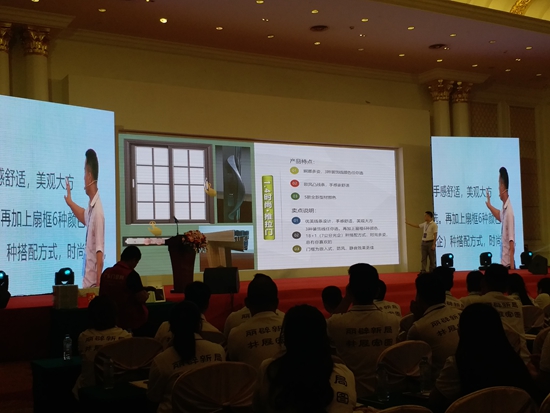 在鼓舞歡欣的頒獎環節過后,漆鵬總經理上臺主持2018年麗都新品發布環節,琳瑯滿目的麗都產品讓在座嘉賓目不暇接,仿佛身處于麗都打造的門窗產品大海洋中,遨游自得!漆鵬總經理還為現場嘉賓詳細介紹了各系列產品的亮點之處,并教授大家在日常的終端門店經營中要善于將產品亮點傳到客戶耳中,讓客戶對門店留下好印象,進而提高門店營業利潤,挖掘更寶貴的財富!現場經銷商無不為麗都總部的貼心與暖心所感動,紛紛表示要加大與麗都總部的合作力度,攜手邁向共贏!