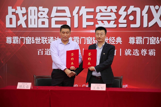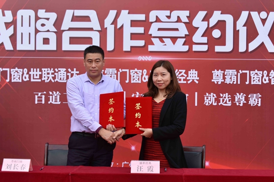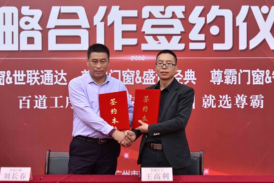 在會議開始前,眾人齊聚尊霸門窗的企業總部廣場,共同見證一場凝聚品牌力量的盛大簽約儀式!萬眾矚目下,廣州市尊霸門窗有限公司與第三方機構世聯通達、盛世經典、智誠天下三家企業進行了隆重的戰略合作簽約儀式,并在媒體鏡頭的記錄下,將這重要的時刻定格為永恒的記憶。一時間,現場響起了雷鳴般的掌聲,在場嘉賓都對尊霸門窗的未來抱有了莫大的期待,相信在與三家精英企業的友好合作下,尊霸門窗必定會煥發出新的生機與活力!