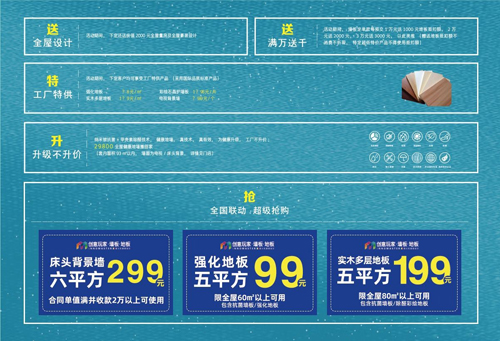 第一重福利:活動期間,下定的客戶均可享受工廠特供產品:創意玩家全新“抗菌+抗醛”健康地板墻材,鉅惠價格,只為回饋于您。
