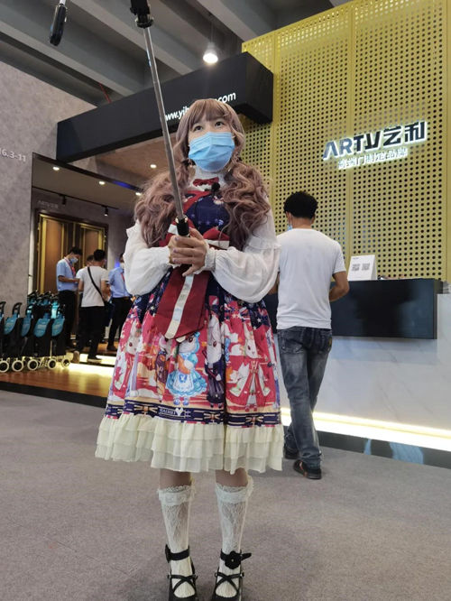 除此以外,Lolita帶你玩轉直播現(xiàn)場,為展會增添色彩。簡約現(xiàn)代的氣息與直播熱潮籠罩了整個展館,讓人流連忘返。