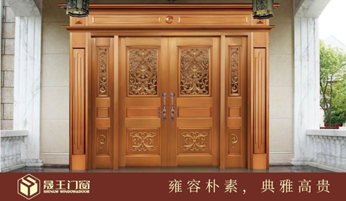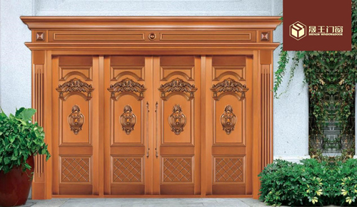 銅門,是一種超豪華的玄關。其金碧輝煌、沉穩厚重,給人一種莊嚴神圣的感覺。以前,銅門既是護佑門內平安的堅固屏障,也是身份的象征,其氣度非凡的外觀及堅固耐用的特性,為主人撐足了面子。銅門之所以百年不衰,也是因為它的氣質渾厚,永不過時。銅門永遠是高貴身份的象征,是高端門類產品的終極代表。