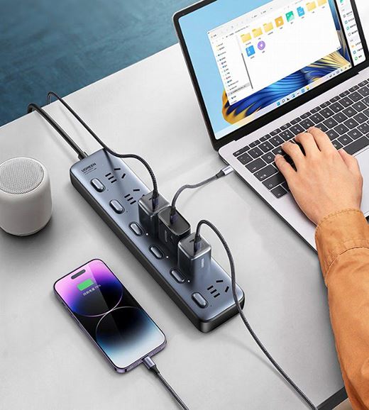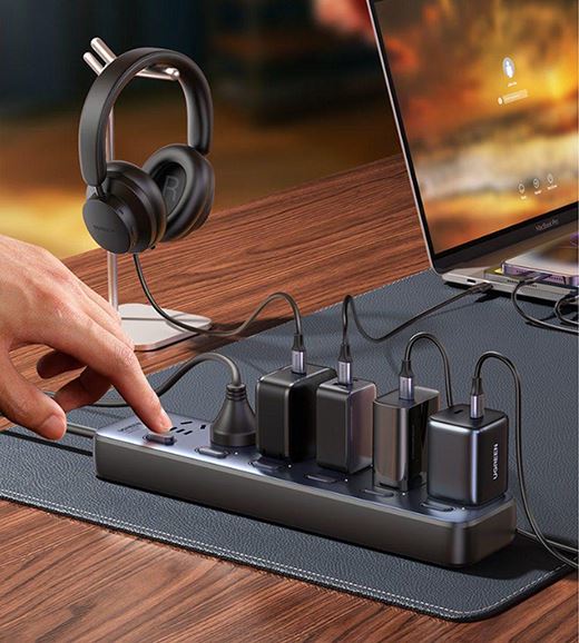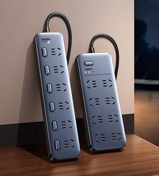 綠聯防雷延長線插座使用新國標 2+3 組合式插孔,相鄰插孔之間采用 42mm 大孔距間隔設計,足夠的距離讓相鄰插孔上的用電設備 / 插頭不會相互干擾,大大增加了插孔的可用率,滿足多設備用電需求。