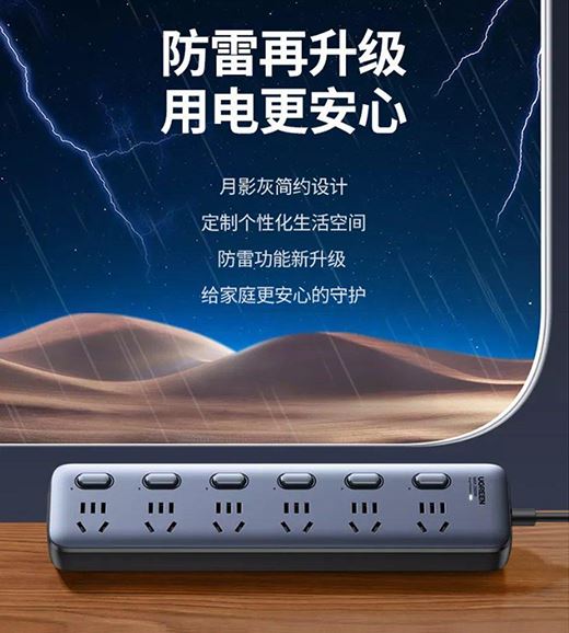 閃電是大自然中云層對云層、云層對地面的強烈放電現象,當超高的電壓通過直接或間接進入到電網系統后,就會導致附近居民家中的電器設備損壞,特別是雷雨天氣,出現設備損壞的幾率更是會大幅上升。近日,綠聯推出了新國標防雷插座,具備多種防雷保護措施,守護電器設備的用電安全。