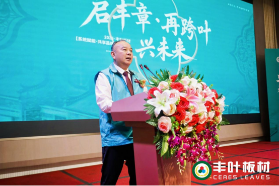 在《戰略方向》環節,豐葉板材品牌創始人葉志良先生發表了題為《嶺南沃土育豐葉 匠心筑夢啟新章》的致辭。他深情回顧了豐葉板材從1992年東莞一家小門店起步,到如今成為行業標桿的奮斗歷程。