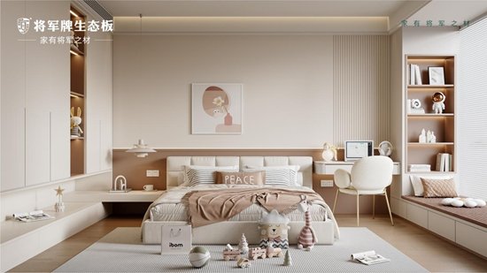 “家·有將軍之材”,將軍牌生態板,以自然本真的原木色勾勒童夢輪廓,用細節處的溫柔巧思守護成長點滴,憑多元花色解鎖童趣想象。從晨光微熹到星光漫窗,讓原木風兒童房成為孩子的快樂天地,盛滿成長的每一縷光影,珍藏童年的每一份美好,以安心品質陪伴孩子走過歲歲年年,讓自然與童趣,始終相伴成長之路。