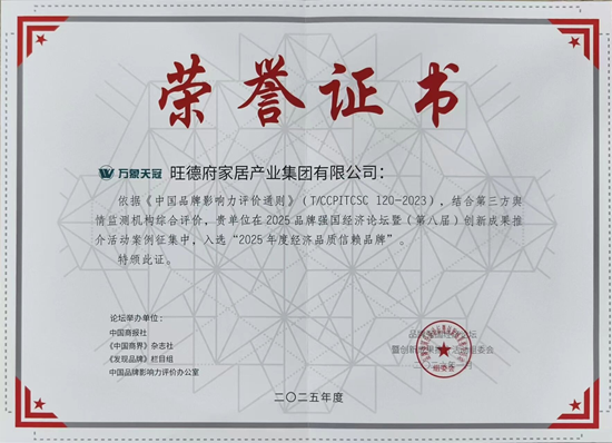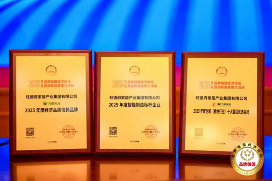 憑借在家居建材行業的持續深耕與突破性創新實踐,旺德府家居集團及旗下核心品牌萬象板材、萬象天冠高端實木全屋定制,從眾多參選企業中脫穎而出,一舉摘得品牌強國“2025年度智能制造標桿企業”、“2025年度創新(板材行業)十大國民優選品牌”、“2025年度經濟品質信賴品牌”三項重磅榮譽,為集團高質量發展的品牌進階之路再添濃墨重彩的一筆。