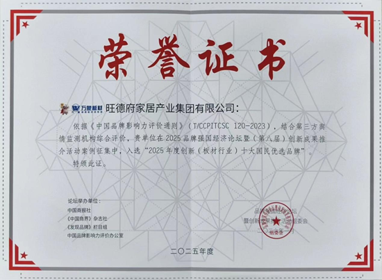 榮譽加冕是認可,更是前行的新起點。旺德府家居集團攜旗下萬象板材、萬象天冠高端實木全屋定制,始終錨定技術創新核心,深耕建材行業技術研發與產業升級,以智能制造筑牢發展根基,以硬核技術突破行業壁壘,將ENF級環保板材、高端實木全屋定制等核心優勢轉化為品牌競爭力。此次斬獲多項品牌榮譽,是集團技術實力與品牌價值的雙重印證,更是助力品牌強國建設的堅實步履。