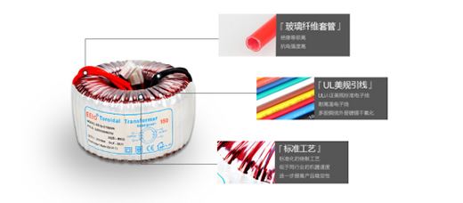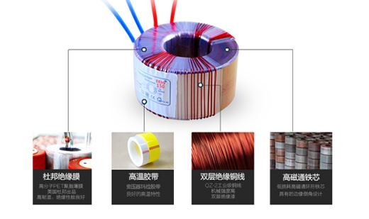 從內部結構上看,主要包括杜邦絕緣膜、高溫膠帶、雙層絕緣銅線、高磁通鐵芯四個主要原材料。杜邦絕緣膜——高分子PET聚脂薄膜,美國杜邦出品,耐高溫、絕緣性能良好;高溫膠帶——變壓器瑪拉膠帶,具有良好的高溫特性;雙層絕緣銅線——QZ-2工業級銅線,機械強度高,雙層絕緣漆;高磁通鐵芯——低損耗高磁通環形鐵芯具有邊緣倒角設計,以人為本。
