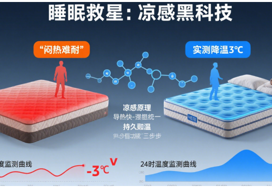 在追求高品質(zhì)睡眠的今天,十大床墊的選擇至關(guān)重要。然而,很多人都面臨著床墊散熱差的困擾,晚上睡覺時常常被悶熱感擾得難以入眠。別擔心,今天我們就來聊聊一款能有效解決散熱問題的神奇床墊——采用石墨烯涼感面料的床墊,實測可降溫3℃,給你帶來前所未有的清涼睡眠體驗。