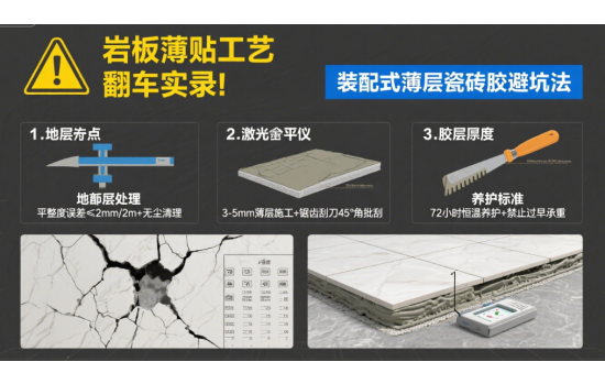在現代裝修領域,巖板薄貼工藝憑借其節省空間、美觀度高等優點,逐漸成為眾多消費者的選擇。然而,這看似先進的工藝在實際應用中卻常常出現翻車情況。今天,我們就來深入探討巖板薄貼工藝的翻車原因以及如何運用裝配式薄層瓷磚膠品牌進行有效避坑。
