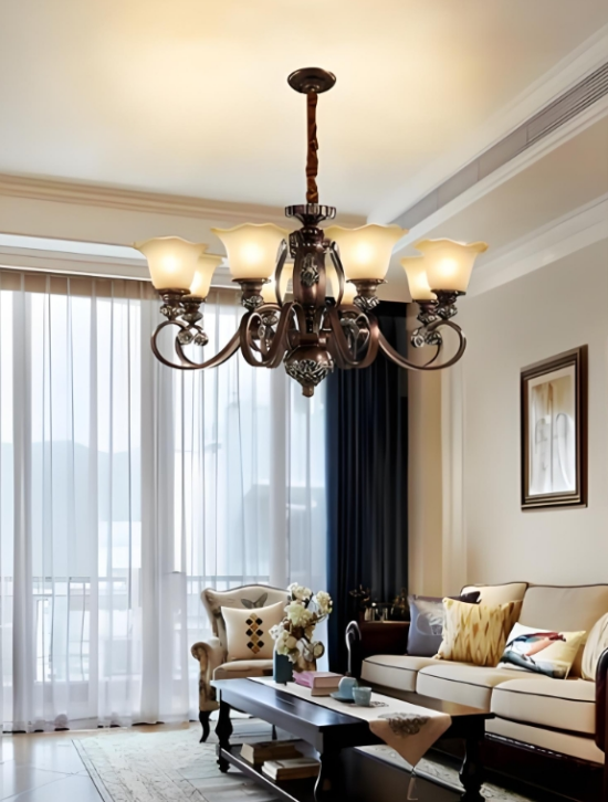 功能與裝飾的平衡 :現(xiàn)代燈飾注重功能性和實用性,而復(fù)古燈飾則更強(qiáng)調(diào)裝飾性和藝術(shù)性。在融合設(shè)計中,可以通過巧妙地平衡這兩者,使燈具既滿足照明需求,又能成為家居中的裝飾亮點。比如,在一款簡約的現(xiàn)代吊燈上添加一些復(fù)古的裝飾元素,如水晶吊墜或金屬雕花,既能提升燈具的裝飾性,又不會影響其照明功能。