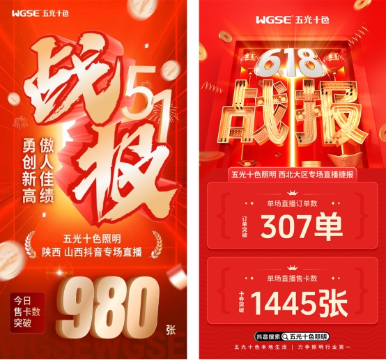 2025年5月“五光十色照明品牌寵粉節(jié)”期間,山西運(yùn)城店以抖音為支點(diǎn),開啟大場(chǎng)直播,撬動(dòng)西北區(qū)域照明市場(chǎng)新增長(zhǎng)極。最終實(shí)現(xiàn)單場(chǎng)直播曝光引流10萬(wàn)+、售券近千張、成交訂單200+的亮眼成績(jī)。遠(yuǎn)低于傳統(tǒng)渠道,展現(xiàn)出品牌賦能在新媒體運(yùn)營(yíng)上的強(qiáng)大優(yōu)勢(shì)。