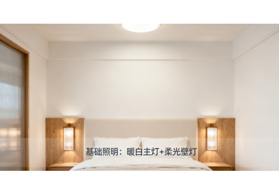 科學(xué)的臥室布光應(yīng)遵循"三層照明法則":基礎(chǔ)照明(環(huán)境光)、重點(diǎn)照明(功能光)、裝飾照明(氛圍光)的照度比例建議為5:3:2。2025年流行的"無主燈設(shè)計"并非簡單取消主燈,而是通過磁吸軌道燈與嵌入式筒燈的組合(建議間距1.82.2m),形成均勻的環(huán)境光(照度3050lux)。床尾墻面安裝的"洗墻燈"應(yīng)選擇15°窄光束角,通過墻面漫反射增加空間縱深感,避免直射光線刺激眼部。