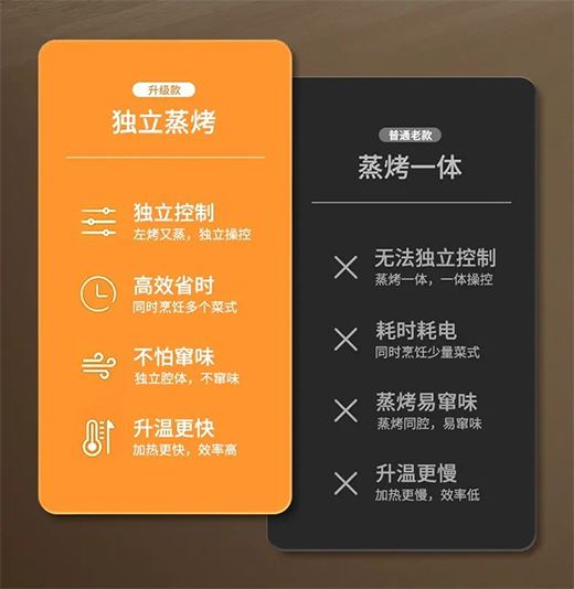 針對這一痛點 , 康納集成灶將多種廚電合為一體 , 為廚房全面減負(fù)。1m³的占用空間 , 同時具備煙機(jī)、灶具、蒸箱、烤箱等多重功能。左烤右蒸的獨立設(shè)計,既能高效省時還能避免竄味。
