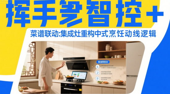 揮手智控和菜譜聯動的結合,徹底重構了中式烹飪的動線邏輯。它將傳統的復雜烹飪流程變得更加簡單、高效和智能化。從食材準備到烹飪完成,集成灶通過先進的科技手段,實現了各個環節的無縫銜接。