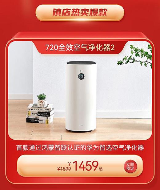 在618開門紅期間,720全效空氣凈化器系列將在華為京東自營、天貓、華為商城同步開啟。各電商平臺還有額外的優惠可享,詳情可至相關購買頁面查詢。