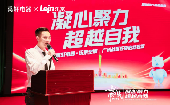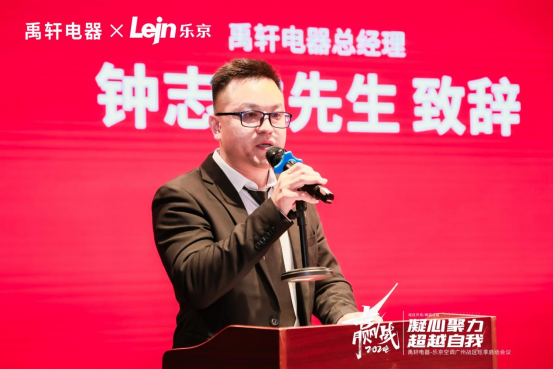禹軒電器總經理鐘志敏發表致辭。他首先感謝廣州代理商一路以來的信任與支持,今天的收獲與榮耀離不開所有合作伙伴的通力合作。他表示,當前,空調的營銷旺季已經來臨,這既是展現實力的絕佳機會,也是實現既定目標的關鍵時刻。他堅信,在樂京空調品牌的堅實后盾下,在全體禹軒電器家人的團結一心與拼搏奮斗下,必將能夠乘風破浪,創造更加輝煌的成績,為樂京空調與禹軒電器的長久發展奠定更加堅實的基礎。