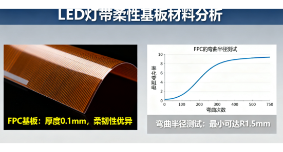在LED照明技術(shù)快速迭代的當(dāng)下,燈帶產(chǎn)品正朝著更輕薄、更靈活的方向發(fā)展,而柔性基板作為燈帶的核心載體,其材料性能直接決定了產(chǎn)品的應(yīng)用場(chǎng)景與使用壽命。目前市場(chǎng)上主流的柔性基板材料主要分為柔性印刷電路板(FPC)與傳統(tǒng)印制電路板(PCB)兩大類(lèi),二者在彎曲半徑、耐折性能等關(guān)鍵指標(biāo)上的差異,成為工程師選型時(shí)的重要考量因素。本文將通過(guò)對(duì)比測(cè)試數(shù)據(jù)與實(shí)際應(yīng)用案例,深入解析FPC與PCB在柔性基板領(lǐng)域的技術(shù)特性與適用邊界。