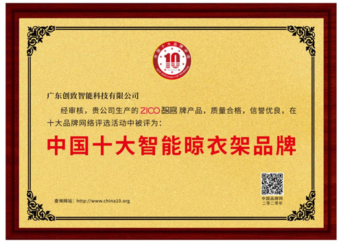 珠三角是智能晾衣機產業的集聚地,產業鏈相對齊全,工藝技術較先進,其區域代表產品電動(智能)類產品更是代表著晾衣機行業的科技前沿。ZICO智客品牌便是在此優勢環境中成長起來,并憑借過硬的技術實力和良好的消費口碑榮獲了“中國十大智能晾衣架品牌”稱號。