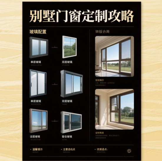 玻璃是門窗的重要組成部分,其配置直接影響門窗的隔音、隔熱和安全性能。在別墅門窗定制中,合理的玻璃配置能為居住者創(chuàng)造一個安靜、舒適的室內環(huán)境。
