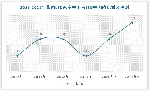 但在LED照明結(jié)構(gòu)中,LED汽車照明占比仍然較少,數(shù)據(jù)顯示,2020年,我國(guó)LED汽車照明占LED照明的比重約為1.5%;2021年,我國(guó)LED汽車照明占LED照明的比重約為1.6%。因此,我國(guó)LED汽車照明行業(yè)還有較大的發(fā)展空間。