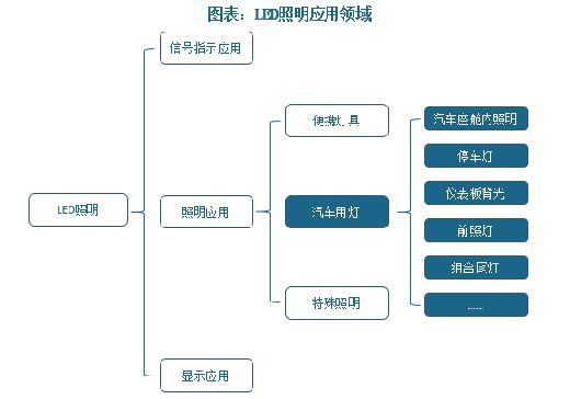 在LED各照明領(lǐng)域中,近年來(lái),憑借光效增高、能耗低、可靠性高、壽命長(zhǎng)、尺寸小及環(huán)保等眾多優(yōu)勢(shì),LED汽車照明應(yīng)用日漸增多,已經(jīng)從最初的汽車座艙內(nèi)照明、停車燈及儀表板背光,跨越到了前照燈及組合尾燈等更寬廣應(yīng)用。此外,由于尺寸小,LED能夠配合豐富的形狀和線條變化,有助提升車燈辨識(shí)度,被指定用于眾多中高檔車的前照燈系統(tǒng)。