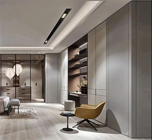 大戶擁有者的你,可以利用一個小房間,或者在主臥劃分區域,打造成一個獨立的步入式到頂全鋁衣帽間,不受空間尺寸的限制,長衣區、短衣區、飾品區、儲藏區、甚至換鞋區一應俱全,所有衣物儲存統統收入其中,生活品質和幸福感雙提升。