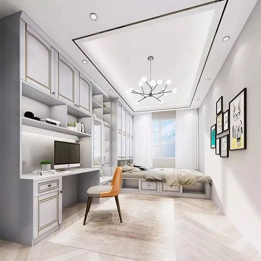 中小戶型也想擁有全鋁書桌書柜,可以利用飄窗與床頭的一側墻面定制到頂飄窗柜,整體簡潔有格調,能讓空間顏值瞬間上升一個檔次,更為閱讀、辦公帶來方便。