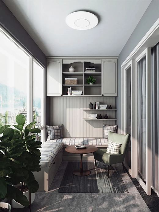封閉陽臺打造卡座休息區,到頂吊柜讓整體空間更開闊、活動區域更寬松,還能打造一方休閑區,讓空間顏值瞬間上升一個檔次!